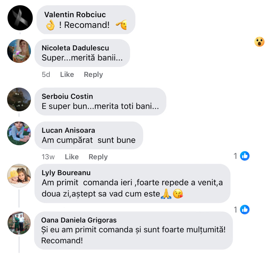 Plata se face cu numerar în sistem ramburs, atunci când primiți coletul de la curier sau online cu cardul.